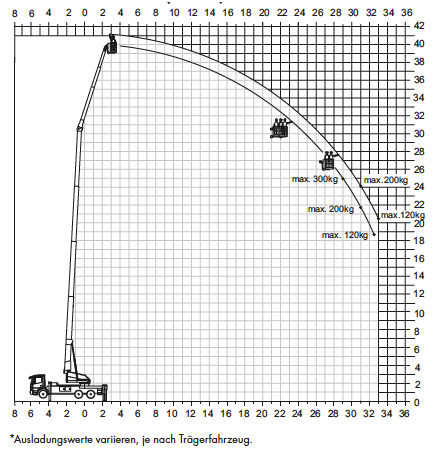 Der K950 mit einer Hakenhöhe von über 43 m ist ein wahres Kraftpaket: 5.000 kg können problemlos 9 m hoch und 7 m weit gehoben werden. Besonders auf engen Baustellen spielt der Alu-Kran seine Vorteile aus: Durch einen geringen Radstand behält der Zweiachser seine Wendigkeit, die hydraulisch teleskopierbare Klappspitze kann auch bei geringem Platzangebot per Funkfernsteuerung ausgefahren werden. Der K950 ist serienmäßig mit einem Hybridantrieb ausgestattet: So kann er je nach Baustellengegebenheiten über einen geräusch- und emissionsarmen Elektromotor oder einen sparsamen Dieselmotor betrieben werden.